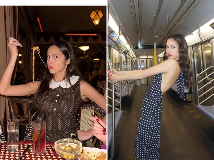 Если и можно назвать отличительную черту стиля Оливии Родригез, то это точно будет принт полька-дот: его певица носит куда чаще других. Родригез предпочитает ретро: она носит платья с воротником халтер или белым отступным воротом с оборками, намекая на стиль 60-х. Все это в дополнении с красной помадой — как бы то ни было, а принт горох лучше всего смотрится с образами, актуальными десятилетия назад.