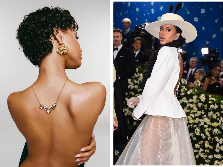 К украшениям на спине мы присмотрелись еще в прошлом году, когда Памела Андерсон вышла в ожерелье Pandora, надетом задом наперед. Теперь же стало ясно, что это полноценный тренд — ведь на последнем Met Gala 2025 года сразу несколько звезд, в числе которых актриса Керри Вашингтон, появились в ожерельях, надетых не в зоне декольте, а в области спины. Тенденцию поддерживают и другие знаменитости — Tyla в рекламной кампании Pandora надела кулон с множеством шармов именно на спину.