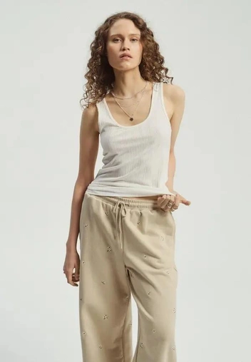Комплекты с эстетикой недавнего пробуждения давно завоевали наши сердца. Летом 2025 года носим как классические варианты с брюками и рубашкой на пуговицах, так и более трендовые с принтом клетка или виши. А для теплых дней рассмотрите шорты и майку алкоголичку — еще один хит 2025 года.