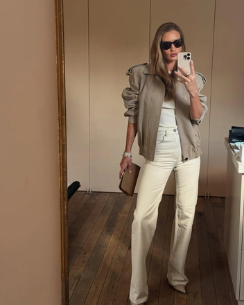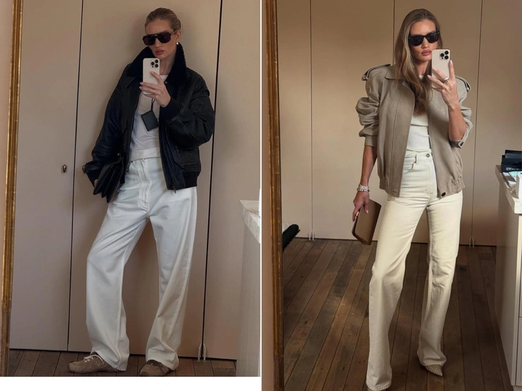 Как носить бомбер осенью 2025 — идеи от Роузи Хантингтон-Уайтли