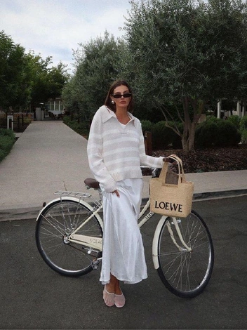 Изначально балетки — женственная обувь, пришедшая на смену каблукам. Так что они всегда идеально смотрятся с платьями — особенно однотонными, которые не забирают внимание с обуви на себя. А если хочется выглядеть трендово, то рассмотрите шаровары из хлопковой или шелковой ткани, асимметричные юбки в греческом стиле или широкие джинсы.