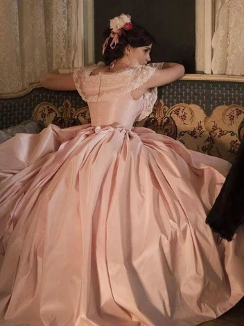 За ленту «Анна Каренина» художник по костюмам Жаклин Дюрран получила «Оскар», и хотя большая часть внимания была сосредоточена на драматические черно-красные наряды Анны Карениной в исполнении Киры Найтли, не менее впечатляющими оказались и образы Китти, персонажа Алисии Викандер. Например, розово-белое бальное платье — мечтательный образ в пастельных тонах, отлично вписывающийся в канву фильма.