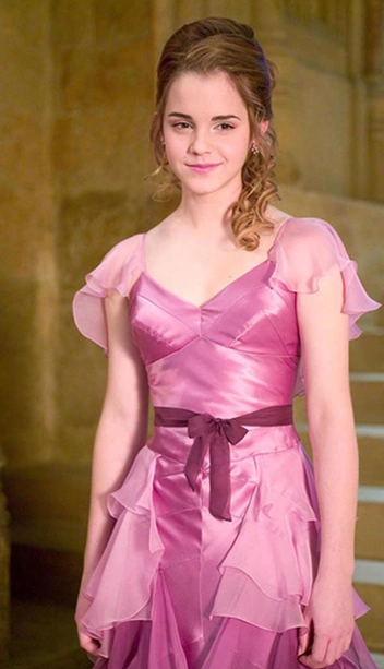 Поклонникам «Поттерианы» наряд Эммы Уотсон из фильма «Маленькие женщины» оказался подозрительно знакомым — похожее платье звезда киносаги носила в фильме «Гарри Поттер и Кубок огня» 2005 года. Нежное розовое платье настолько расходилось с привычным стилем Гермионы Грейнджер, что сразу запомнилась фанатам и стало одним из самых знаковых образов во всей серии фильмов.