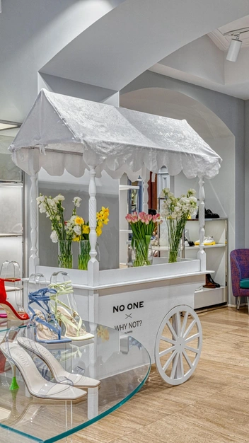 Интерьер и витрины No One в ГУМе украсил дуэт из ранункулюсов и диантусов, который сочетал в себе нежную гипсофилу с бархатистой розой. Такой чувственный союз цветов был выбран неслучайно: за каждой хрупкой девушкой прячется невероятная сила, с которой она готова переживать все переломные моменты и покорять мир. В ТЦ Метрополис и ТРЦ Европейский бутики мультибренда дополнили стильные белоснежные тележки с яркими цветами, ставшие настоящими арт-объектами и источниками тепла и женской энергии.