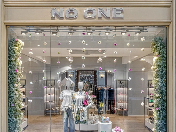 Интерьер и витрины No One в ГУМе украсил дуэт из ранункулюсов и диантусов, который сочетал в себе нежную гипсофилу с бархатистой розой. Такой чувственный союз цветов был выбран неслучайно: за каждой хрупкой девушкой прячется невероятная сила, с которой она готова переживать все переломные моменты и покорять мир. В ТЦ Метрополис и ТРЦ Европейский бутики мультибренда дополнили стильные белоснежные тележки с яркими цветами, ставшие настоящими арт-объектами и источниками тепла и женской энергии.