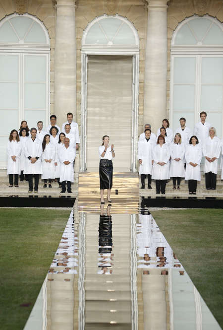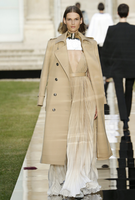 Перед началом показа гостям раздали распечатки архивных фото, снятых в период с 50-х по 70-е годы: на них Одри Хепберн и другие музы Юбера де Живанши позировали в созданных им туалетах. Конечно, параллели с тем, что затем все увидели на подиуме, были очевидны: архитектурный крой, обилие кейпов, капюшоны, длина в пол и акцент на талию. Но все-таки Клэр Уэйт Келлер удалось доказать главное: опираясь на наследие, она умеет не выпадать из современного контекста и всегда остается собой.