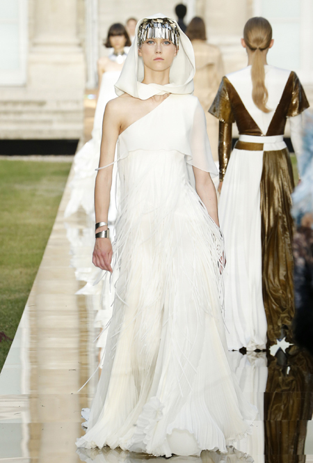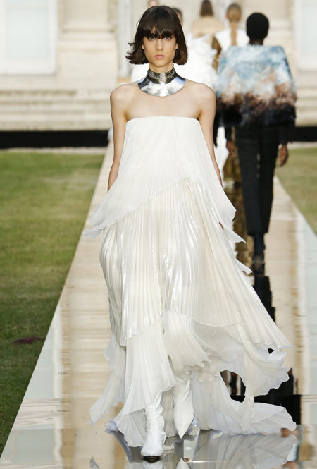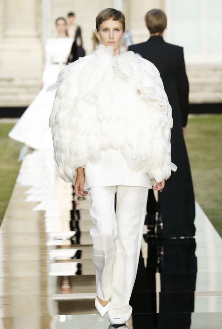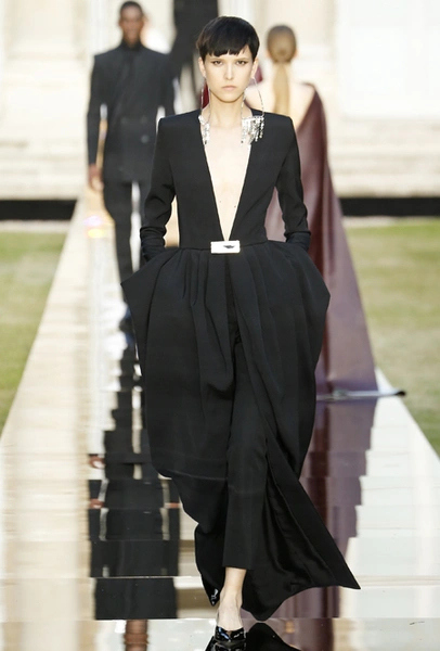 Первая женщина на посту креативного директора Givenchy посвятила новую кутюрную коллекцию памяти основателя модного дома. Ход вполне логичный, учитывая тот факт, что Юбер де Живанши ушел из жизни в феврале. Возможно, было бы, напротив, странным не превратить очередной показ в своеобразную ретроспективу творчества Юбера, так что Уэйт Келлер здесь, скорее, действовала в предлагаемых обстоятельствах – и прекрасно справилась с задачей.