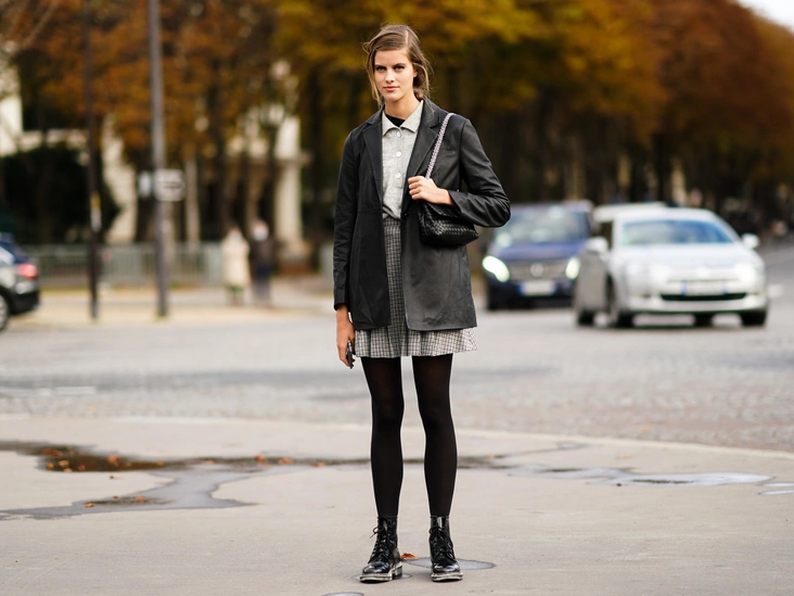 Самый очевидный трюк — дополнить образ плотными колготками, в которых вы точно не замерзнете (лучше делать выбор в пользу 100+ den). Хотя наиболее популярным цветом с наступлением зимы остается черный, на сдержанных моделях можно не останавливаться и экспериментировать с палитрой хаки, бежевого или бордового (как, например, делала принцесса Уэльская: Как принцесса Диана носила цветные колготки).