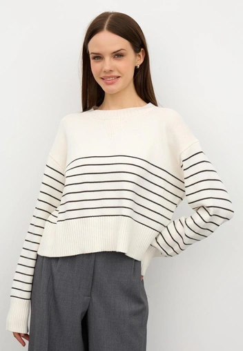 В этом сезоне дизайнеры дружно решили, что самый стильный свитер — минималистичный и монохромный. Яркие и пестрые принты остались в прошлом. Но если хочется добавить повседневному образу фактуры, то лучше отдать предпочтение свитеру в горизонтальную полоску. Такой останется актуальным на долгие годы, хотя сейчас подобные модели в тренде.