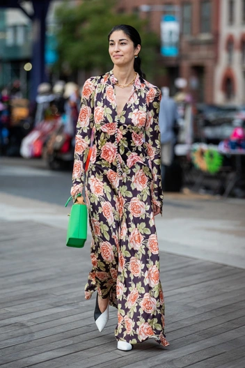 В этом году длина макси популярна, но в коллекциях модных брендов присутствуют только минималистичные монохромные платья. Такие предметы гардероба выглядят эффектно и дорого: их можно носить как днем, так и вечером, объединяя с обувью на каблуке и добавляя к аутфиту крупные браслеты сразу на две руки.