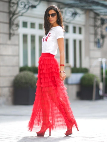 Нарядные юбки с броским рисунком имеют место быть в этом сезоне только, если это модели длины мини. Макси необходимо немедленно утилизировать. На замену такому предмету гардероба можно найти монохромные юбки в пол классического белого или черного цветов.