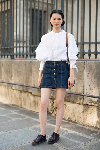 Популярные в нулевые модели коротких юбок из денима с пуговицами спереди в современных реалиях смотрятся нелепо. Их можно представить разве что в детском гардеробе.