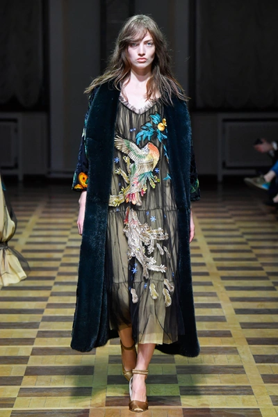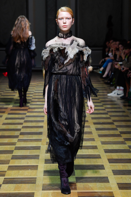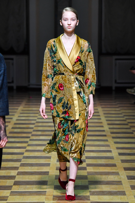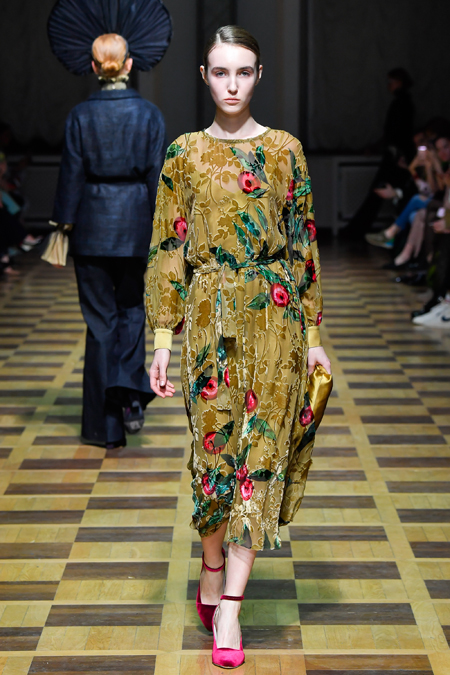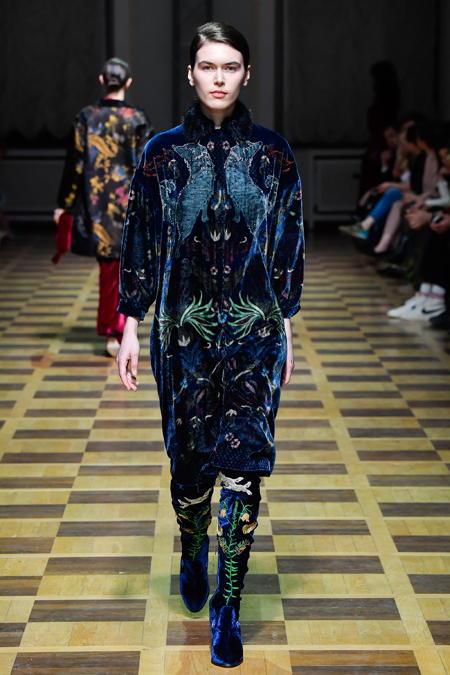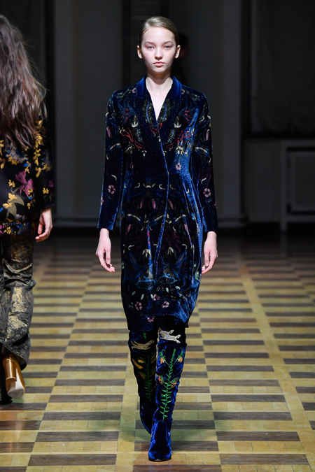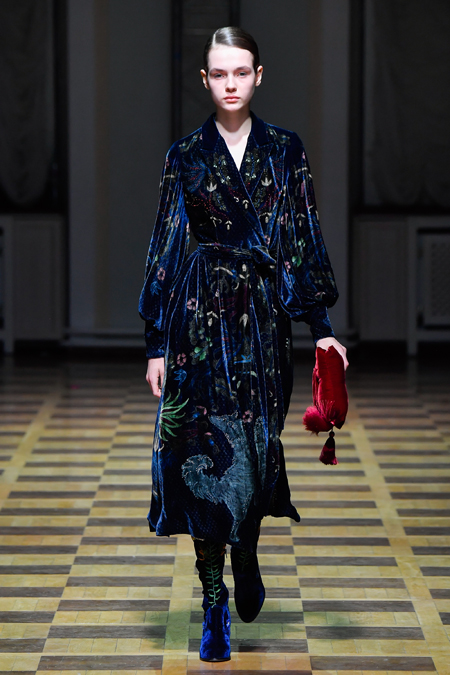 Закончился показ серией нарядов, в которых бархат сочетался с вышитыми принтами в виде растений и зверей и – опять актуальный тренд – с полупрозрачной тканью. В целом, Ахмадуллина снова дала публике то, что та от нее ждала. И пусть этот романс мы давно любим и, пожалуй, даже знаем наизусть, не понадобится ли ему в следующем сезоне новая, неожиданная аранжировка?