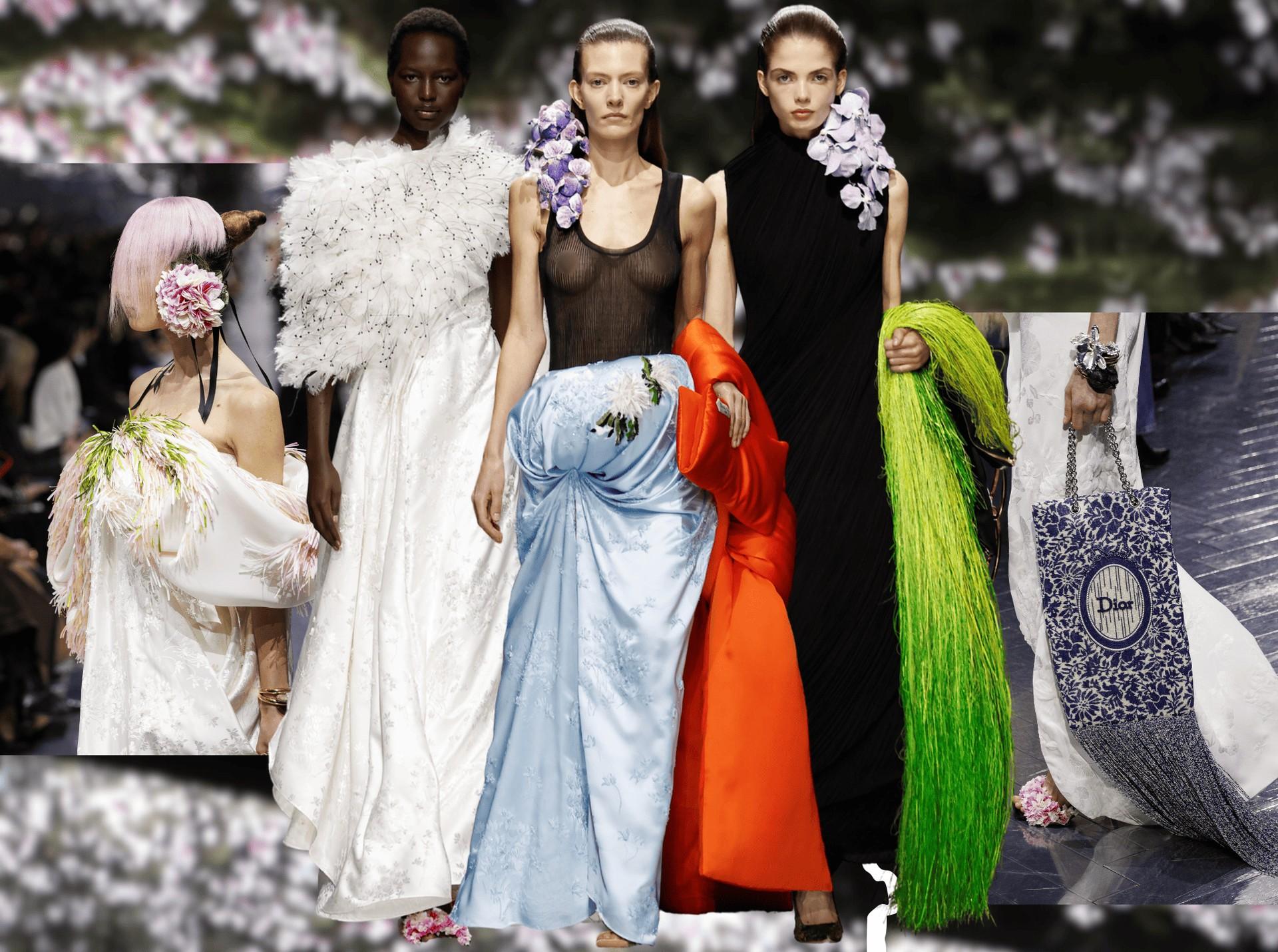 Тем же приемом, придя на работу в бренд, воспользовался и Раф Симонс. Представляя свою дебютную коллекцию — полную и флоральных принтов, и фирменных «цветочных» фасонов, — он превратил пространство вокруг подиума в цветущий сад. Стены заменили живые инсталляции из роз, дельфиниумов, орхидей.