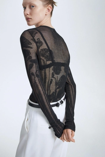 Свитер от Choux с говорящим названием «I can buy myself flowers» поднимает настроение россыпью желтых цветов. А если сегодня вы в команде total black, приглядитесь к тонкому свитеру Limé с цветочным узором. Кстати, прозрачность — еще один тренд сезона 2024/25.