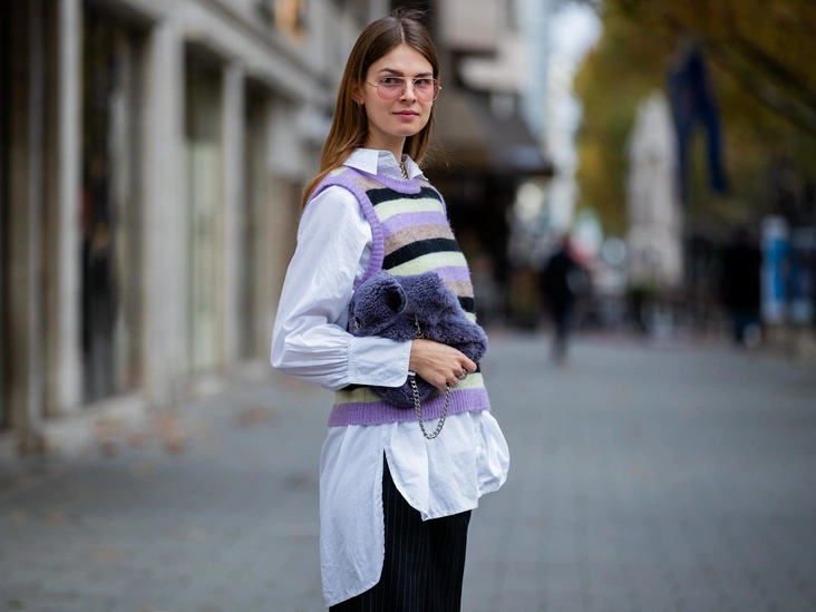 Этот тренд еще с начала осени можно было увидеть у модниц в Instagram (запрещенная в России экстремистская организация) и на просторах стритстайла. При этом теплый жилет в нашем классическом понимании стоит забыть. Актуальны сейчас трикотажные оверсайз-жилеты с V-образным вырезом, которые больше напоминают уютный свитер без рукавов. Надевают такой жилет поверх свободной рубашки или базовой футболки (читайте также: Утепляемся: как носить теплый вязаный жилет (и где его найти)).