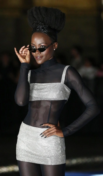 Стиль 90-х с сумкой Керри Брэдшоу Fendi Baguette и бриджами вместо брюк вернулся давно — пора «реанимировать» и стиль 80-х! По крайней мере, эту тенденцию показала кенийская актриса Люпита Нионго со своей объемной прической и полупрозрачными леггинсами. Образ дополнила серебряная мини-юбка и топ из той же ткани, а также черные лакированные лодочки.