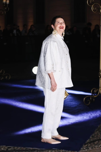 Итальянская актриса редко выходит на красные дорожки — тем интереснее нам рассматривать каждое ее появление. В этом году Росселлини не побоялась репутации белого цвета, как придающего лишние килограммы, и составила образ из ажурных прямых брюк и пиджака с эффектными пуговицами. Не меньше внимания привлекли акцентные серьги-люстры из желтого золота с жемчугом, которые стройнили лицо актрисы и гармонировали с ее золотым клатчем (читайте также: Советуют профи: 3 стрижки, которые стройнят лицо — вы должны их попробовать).