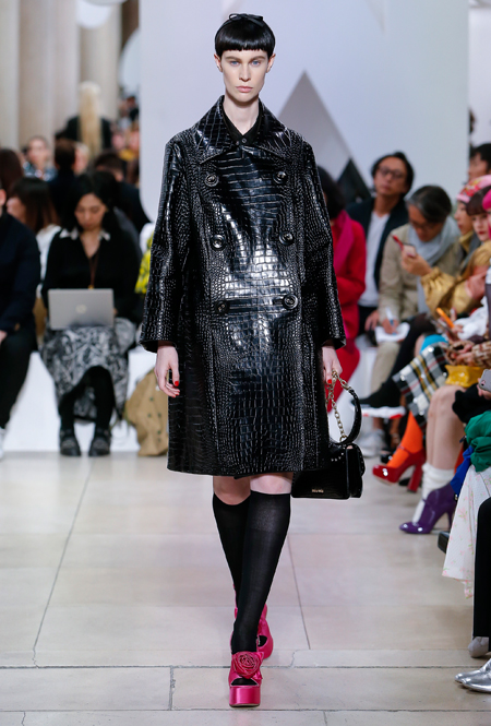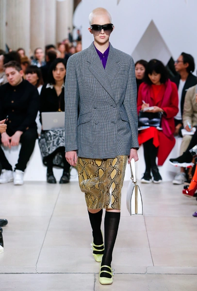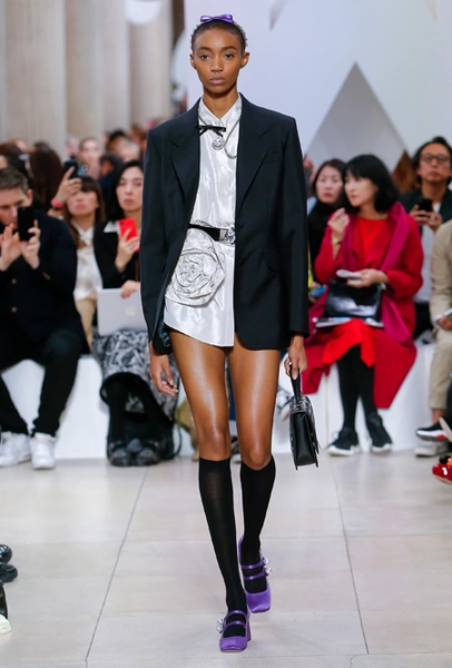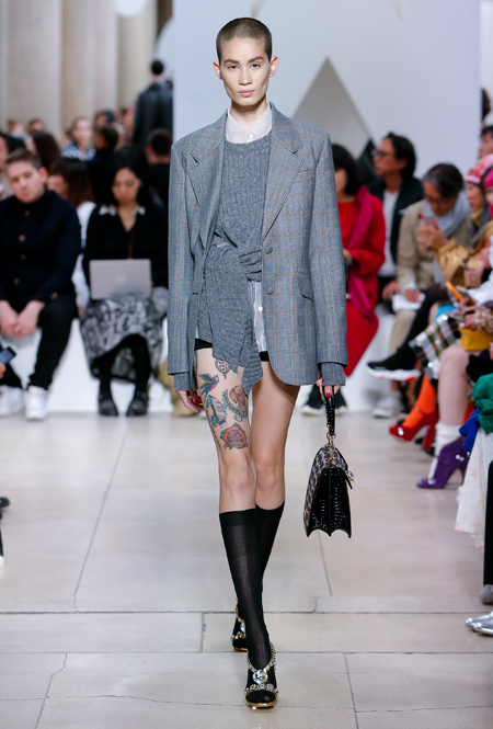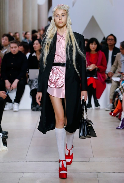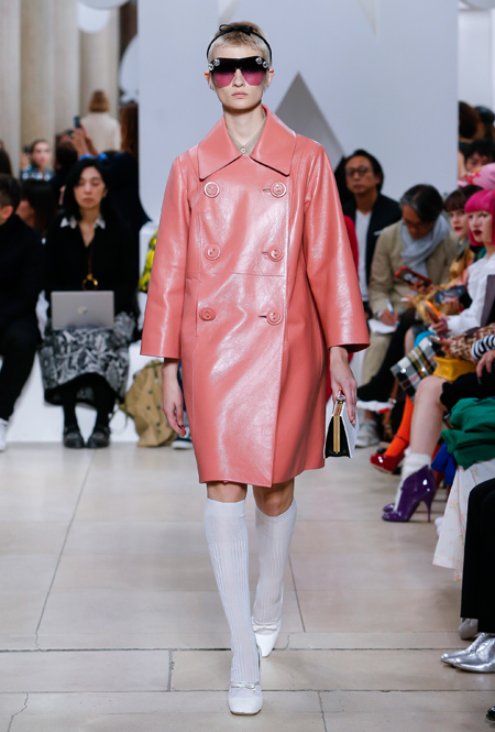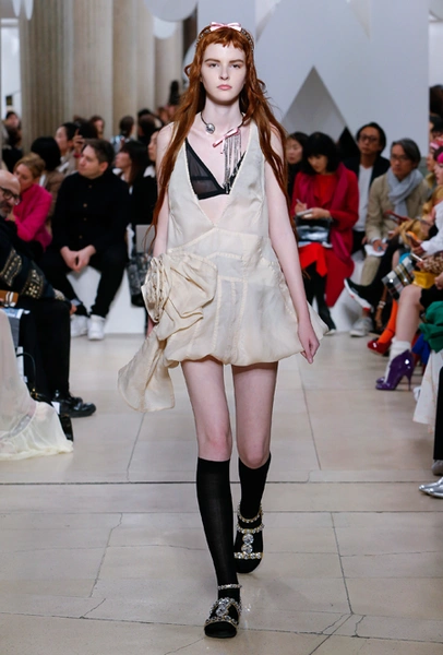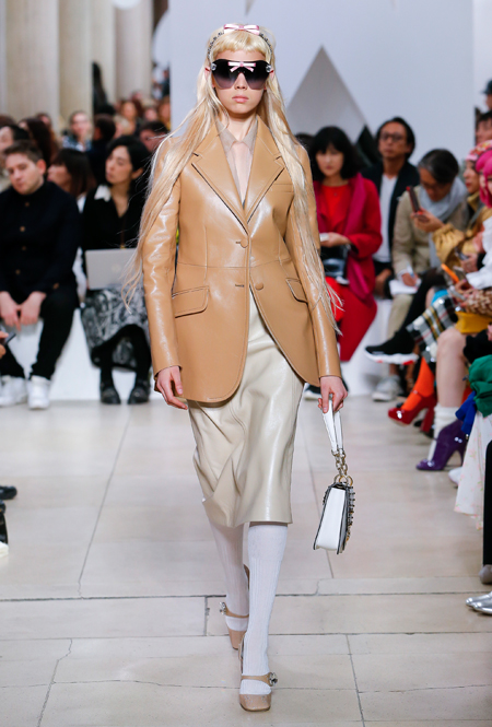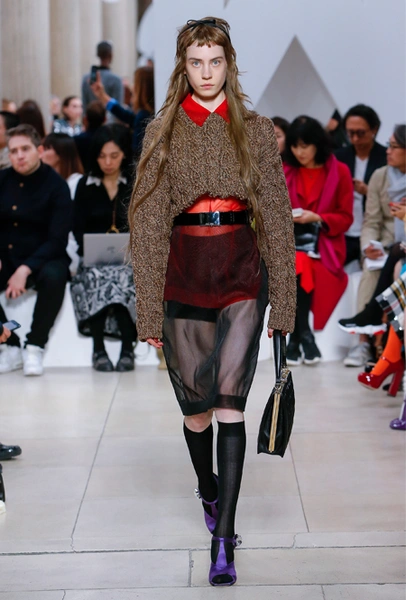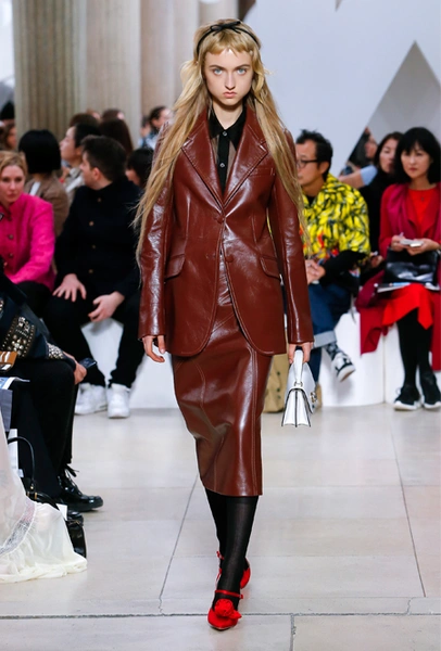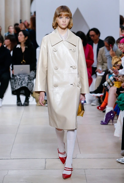 Исторически сложилось, что коллекции Миуччи Прада для бренда Miu Miu — более авангардные и экспрессивные, чем для дома Prada. Здесь дизайнер чувствует больше свободы самовыражения и не всегда ориентируется на наследие семейного бизнеса — в своем бренде она легко доверяется собственному чутью и настроению. Однако в новом сезоне бренд представил довольно лаконичную коллекцию в нейтральных оттенках — от этого не менее интересную. В новой коллекции Миучча Прада вновь обратилась к образу Твигги, показав сдержанную сторону английского стиля: героиня Miu Miu носит классические жакеты, кожаные плащи и миди-юбки.