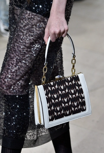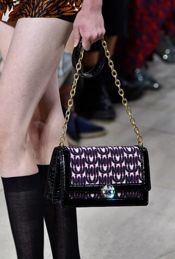 В аксессуарной линейке бренд представил целую серию сумок с монограммами. В будущем сезоне дизайнеры предлагают огромное количество разнокалиберных вариантов — от образов, полностью усыпанной литерами, до небольших вставок на одежде и аксессуарах — поэтому каждый сможет выбрать логотипы по вкусу. У Miu Miu литеры ненавязчивые и, скорее, похожи на затейливый принт, поэтому такие аксессуары точно оценят те, кто предпочитает сдержанность и не привык к кричащим логотипам.
