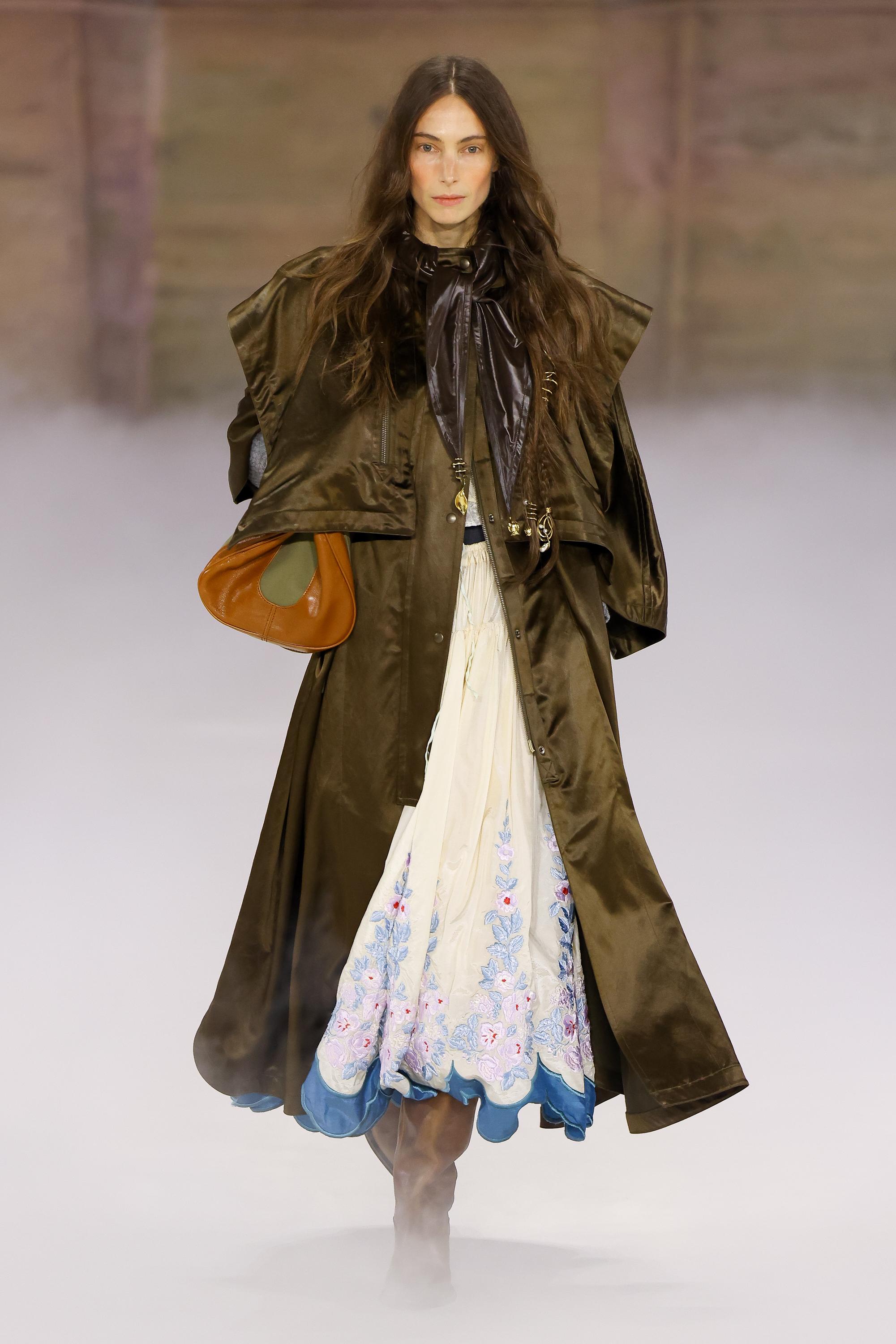 У Chloé и Zimmermann деревенский код становится более сложным: крошечные цветы соседствуют с винтажными кружевами, стегаными тканями, замшей и шерстью, а силуэты напоминают одновременно старые ночные сорочки, походные плащи и наряды героинь из исторических драм.
