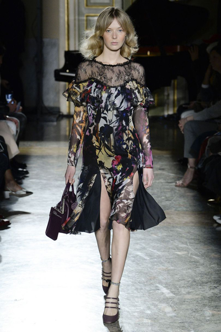 Осенне-зимнюю коллекцию Blumarine основательница и креативный директор бренда Анна Молинари посвятила 40-летнему юбилею своей марки. Возможно, именно поэтому вещи получились торжественно-праздничными, прославляющими истинно итальянскую dolce vita.