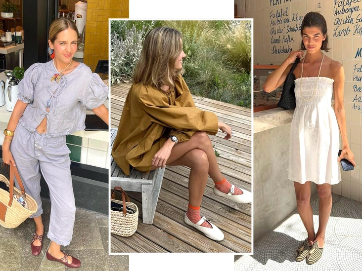В тренде остаются пижамные хлопковые костюмы, которые можно смело интегрировать не только в деревенские и пляжные образы, но и в городские. Например, под пижамную рубашку в полоску наденьте еще одну базовую белую — так вы повторите модную тенденцию на многослойность. Дополнить образ всегда можно босоножками на каблуке и кожаной сумкой, что сделают его эффектным и нарядным. Обратить внимание стоит и на брюки, выполненные в технике кроше, — сегодня они есть в гардеробе самых модных девушек (читайте также: 10 наивных вопросов о льне и профессиональных ответов на них).