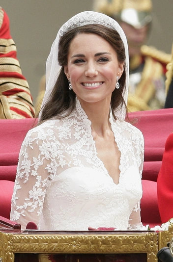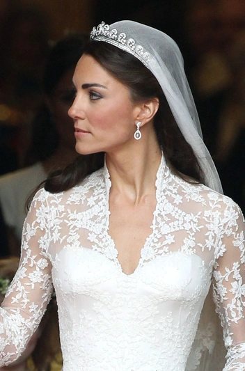 В день свадьбы с принцем Уильямом Кейт Миддлтон позаимствовала тиару Cartier Halo Tiara у королевы Елизаветы. Около 1000 бриллиантов в платине идеально дополнили ее культовое платье от Alexander McQueen.