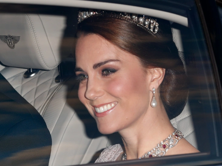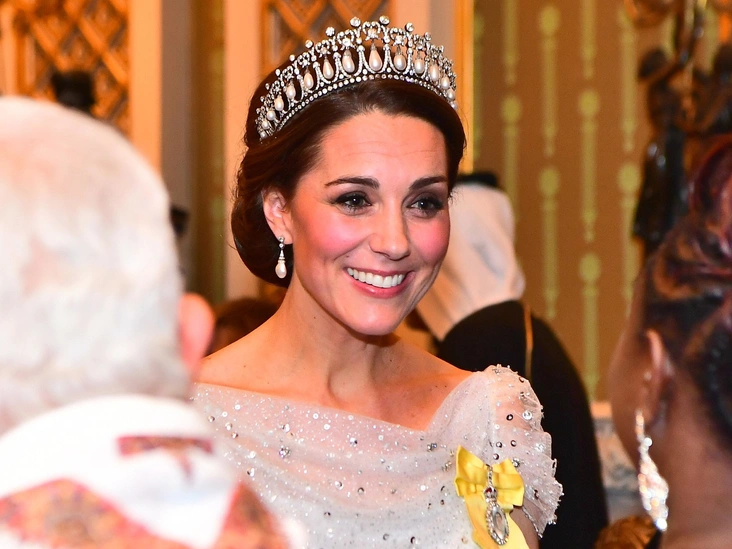 В конце 2018 года Кейт надела тиару «Узелки любви» на ежегодный вечерний прием для членов дипломатического корпуса в Букингемском дворце. К счастью, фотографам разрешили сделать снимок Кейт в тиаре и мерцающем платье от Jenny Packham. Образ завершили переливающийся клатч, жемчужные серьги и желтый Орден Королевской семьи.