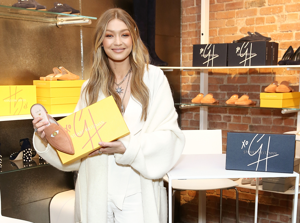 Теперь же тотал-лук от старшей из клана Хадид можно завершить и обувью, которую топ-модель создала вместе с брендом Stuart Weitzman и позавчера с гордостью представила. Правда, капсула получилась совсем небольшой, а если точнее — то совсем крошечной: всего две пары мюли без каблуков. Главным акцентом обуви стала аппликация, похожая на амулет от сглаза — назар бонджук.
