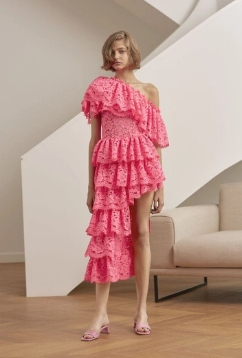 Платья с объемными воланами или рюшами придутся по вкусу fashion-максималисткам. Усильте впечатление, выбрав их в ярком алом цвете или в оттенке фуксии – отличный вариант для эффектного появления на вечеринке после карантина. Если примерить такой наряд дома, можно почувствовать себя настоящей Марией-Антуанеттой – платья-пирожные королева любила не меньше настоящих сладостей.