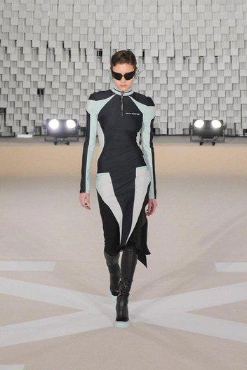 Для Off-White я ходила в первый раз: команда была просто супер, все вежливые и приятные, организация на высшем уровне. Я очень люблю работать с большими брендами — на их шоу нет путаницы, стресса и дезориентации в пространстве. Мне достался очень красивый образ: обтягивающее платье и сапоги на каблуках, в которых чувствуешь себя уверенно. Плюс, музыка на шоу, сет-дизайн и локация тоже были невероятно стильными.