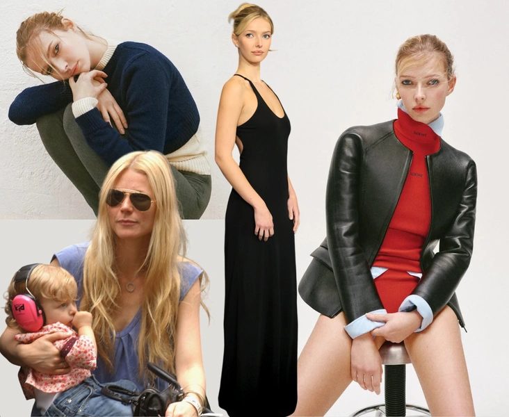 Узнаваемая фамилия и визуальная ДНК (галочка напротив Эппл: Пэлтроу + Мартин, архив Calvin Klein, нежный «голливудский минимализм» 90‑х);