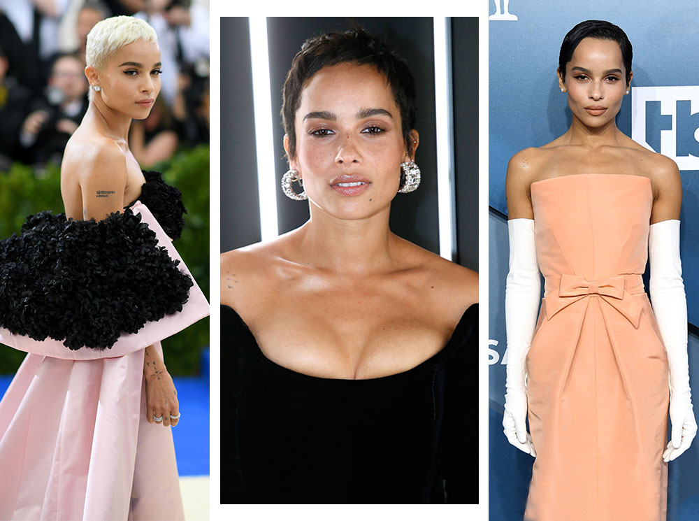 Платья-баллоны, усыпанные перьями марабу, или рискованные голые наряды из тонкого полупрозрачного кусочка кружева – если Зои выходит на ковровую дорожку, ей нет равных. Все дело – в умении добавить к любому наряду изюминку (или «безуминку»). Мы не увидим ее в скучном платье: лаконичность 90-х – не про Кравиц-младшую. Если простое по фасону платье от Armani – то только ярко-розового цвета. Если классический пышный наряд от Dior – то только вдоволь усыпанный цветными перьями. При этом в ее арсенале есть немало черных платьев, которые она дополняет сумками необычной формы, акцентными украшениями или безумным макияжем.