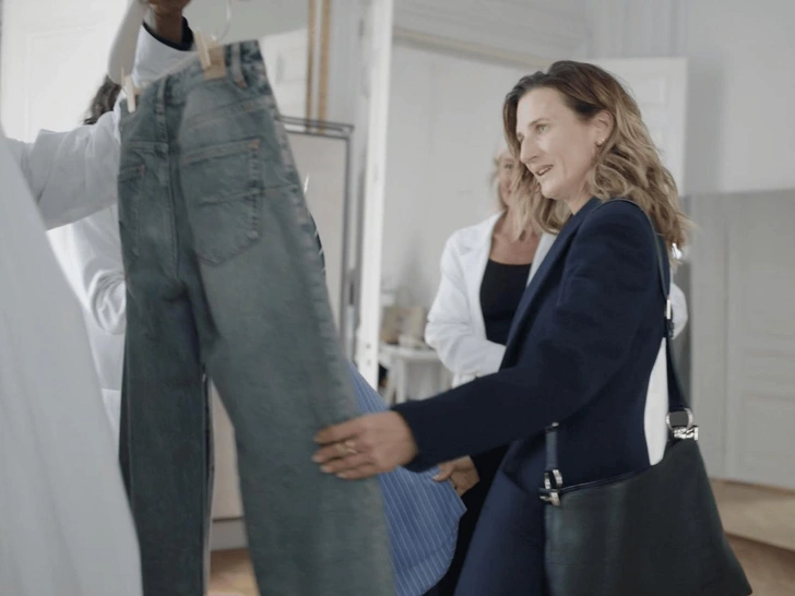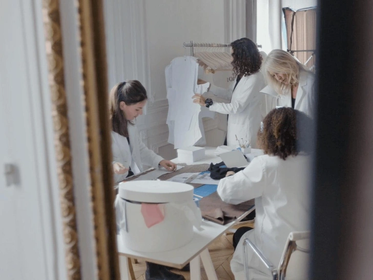 Минута славы — а точнее, добрые полчаса — досталась и труженикам тыла. До начала показа мы увидели финальную примерку луков со знаменитостями, где работники Dior заботливо помогали Дженнифер Лоуренс укоротить джинсы и советовали Майки Мэддисон все-таки оставить воротник поло оттенка пиона поднятым — так, согласитесь, интереснее. Место для портных ателье нашлось и в упомянутом фильме.