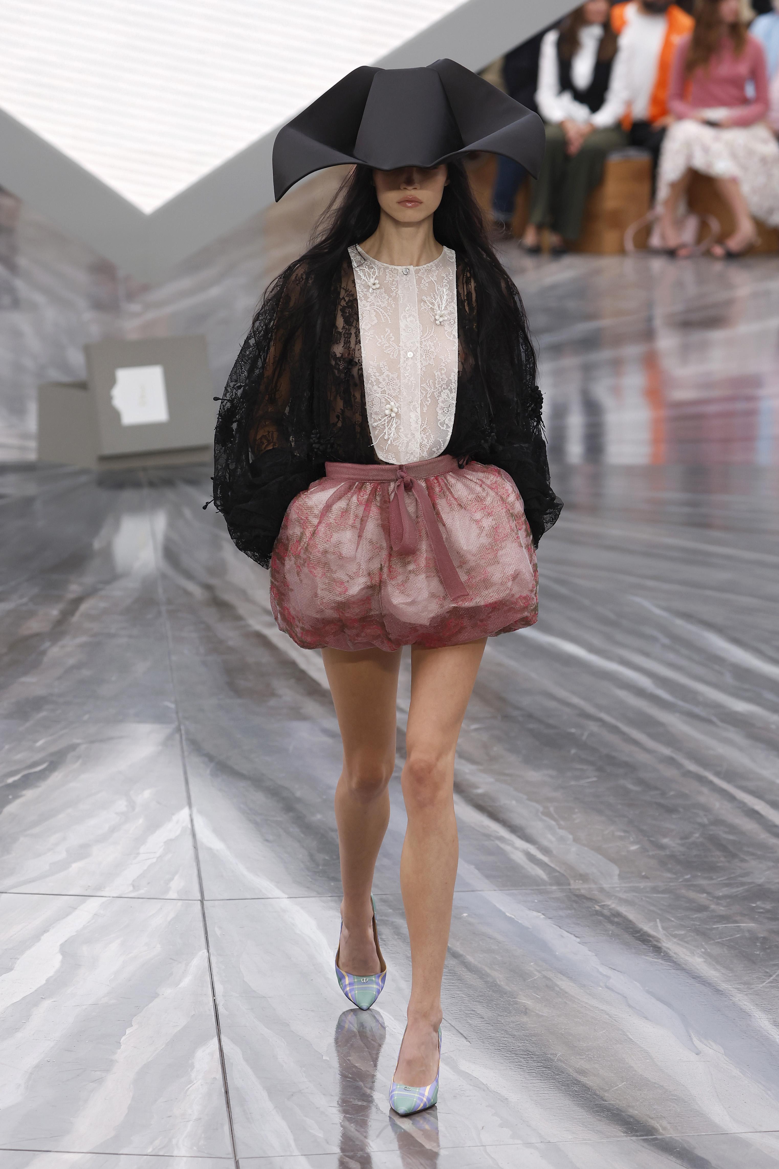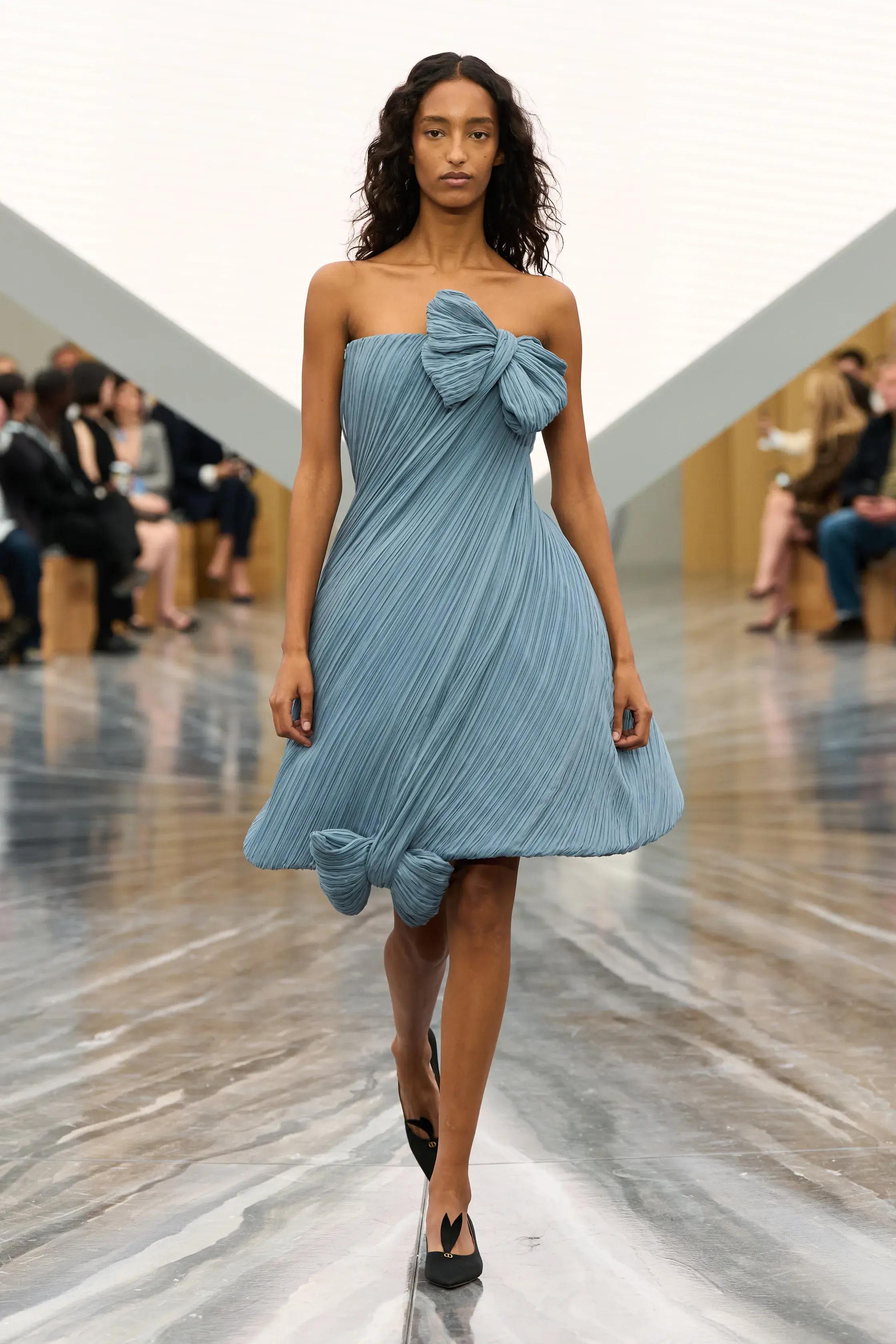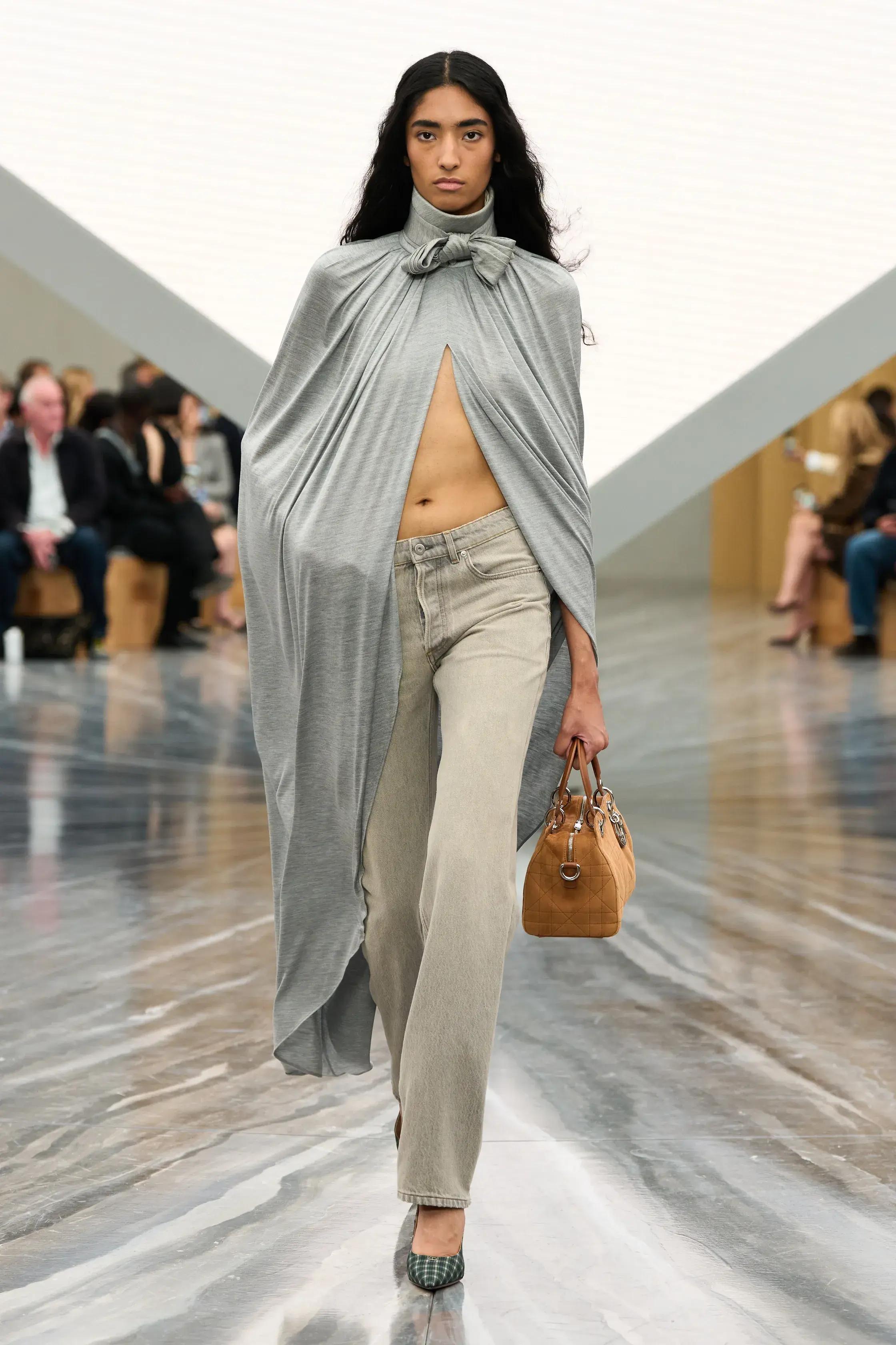 Моментами создавалось ощущение, что Андерсон отсылает не только к Диору и Гальяно, но и к… Chanel. Дизайнер как будто соревнуется с ним: розовый кейп напоминал твид, но его более облегченную версию из плетения шерстью — Андерсон как бы показал, «вот, как можно преобразить надоевшую тяжелую ткань!». В бесформенной сумке на цепочке чувствовалась отсылка к аксессуару Chanel 22, а голубое платье с бантом было похоже на одно из платьев коллекции Chanel haute couture 2025. Случайное совпадение или попытка переманить клиентов Chanel? Ответы на эти вопросы пока остаются открытыми.