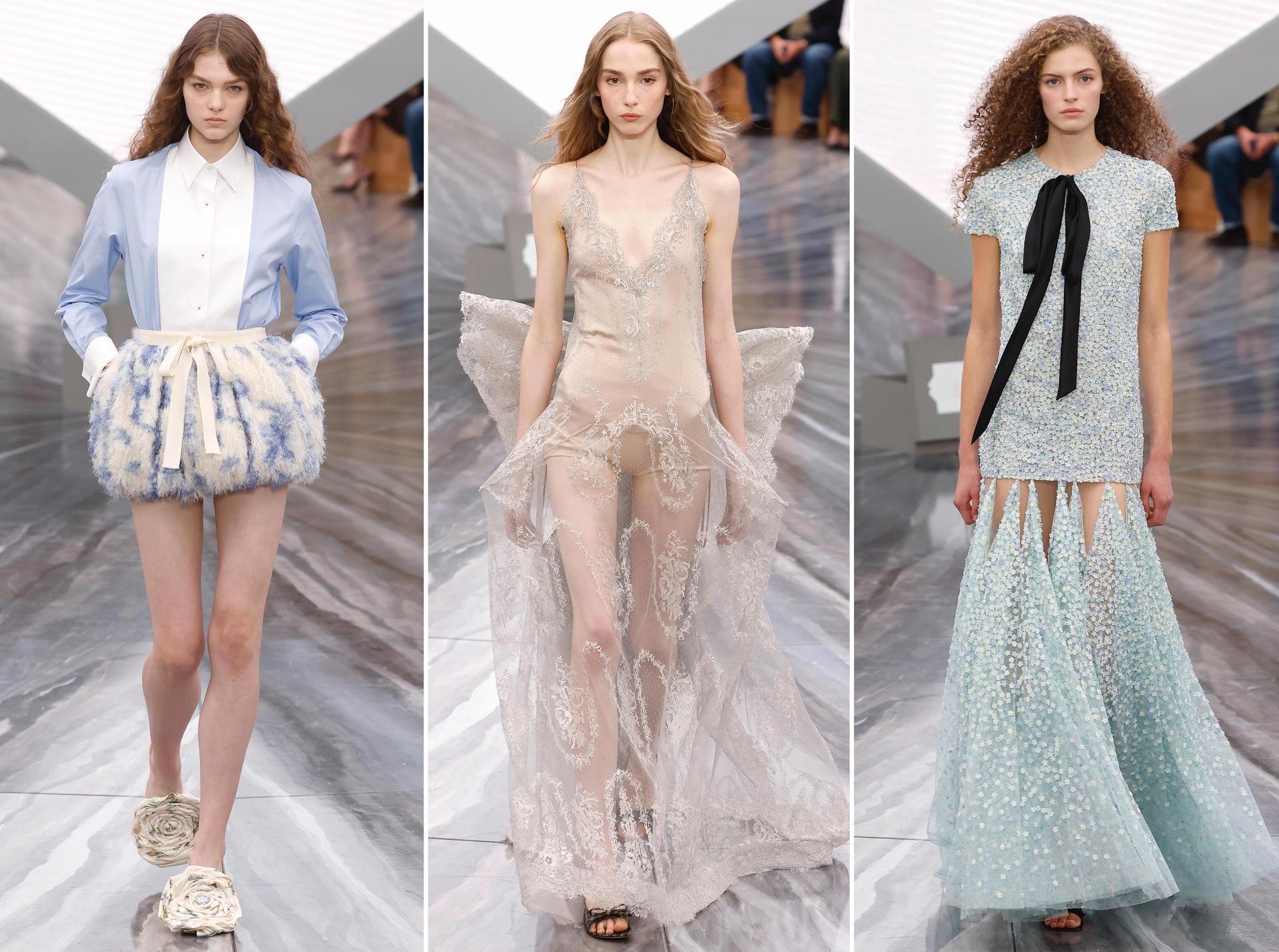 «Как солнце в утренней росе, и только мраком смягчены» — гласят строчки стихотворения «Она идет во всей красе» Лорда Байрона, которое прозвучало в середине шоу. Ими легко можно описать палитру, к которой художник-Андерсон приберег, создавая одежду. Известный виртуозной игрой с цветами, он не стал использовать яркие и режущие глаз оттенки, привычные для весенне-летнего сезона. Мягкость мятного вместо резкости салатового, нежность розового вместо страсти красного, кротость светло-голубого вместо звонкости лазурного — цвета и правда напоминают луч рассветного солнца, которому мрак уходящей ночи пока не дал раскрыться.
