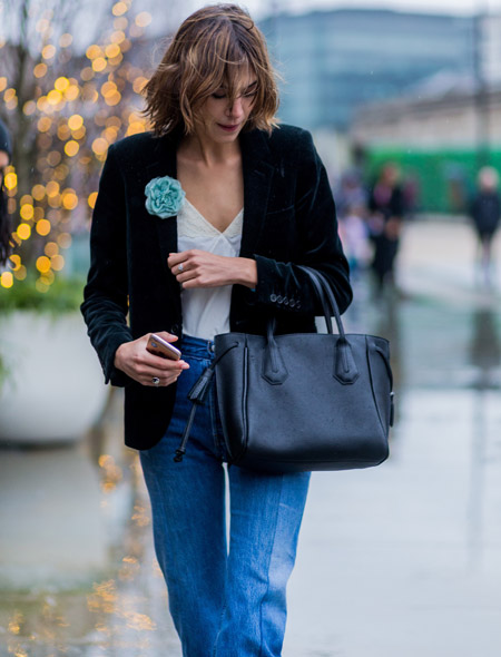 Их коллеги, к слову, предпочли носить отдельные элементы костюма - бархатные брюки с завышенной талией и лаконичные пиджаки. Интересно, что компонуются вещи из такого «аристократичного» материала с кедами, джинсами и топами-бюстье. Ведь бархат сам по себе привносит в образ необходимую женственность и нарядность, оттягивая внимание от других, более простых, элементов.