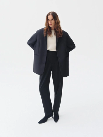 У Present Simple никаких сложных экспериментов с кроем — только классические силуэты, удобные и понятные: свободные жакеты, вдохновленные модой 1990-х, прямые или чуть приталенные. Бренд использует итальянскую шерсть разной плотности — есть жакеты из совсем плотной фланелевой шерсти, которые осенью и весной можно носить как пальто.