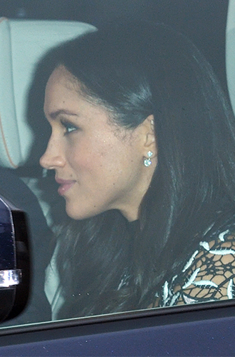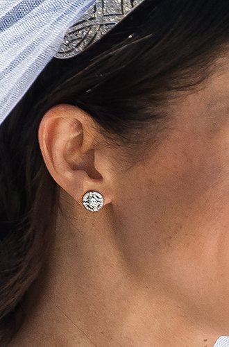 Побывав в Виндзорском замке за несколько дней до свадьбы Меган не упустила случая продемонстрировать бриллиантовые серьги Snowstorm от своего любимого канадского бренда Birks.