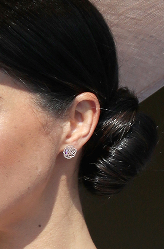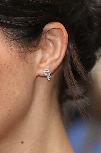 Для своего первого выхода уже в роли Ее Высочества на мероприятии в честь 70-летия принца Чарльза Меган выбрала серьги Idylle La Rose из серебра с родиевым покрытием и мелкими бриллиантам (общий вес 0,43 карата).