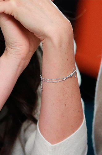После того как в марте крещение Меган провел сам архиепископ Кентерберийский, девушка стала появляться с изящным бриллиантовым браслетом с крестиком от Vanessa Tugendhaft из 18-каратного золота.