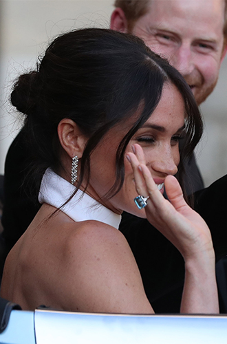 Впервые украшения были замечены на Меган в апреле, на приеме в честь к «Игр непокоренных». Однако звездный час из пробил 19 мая...