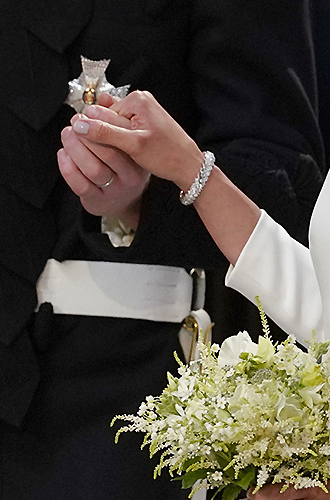 Именно Reflection de Cartier красовался на запястье невесты в день королевской свадьбы. Дизайн украшения из 18-каратного белого золота с более чем 100 бриллиантами описывается как «создание потрясающего сияния и света».Браслет Reflection de Cartier: £241 000