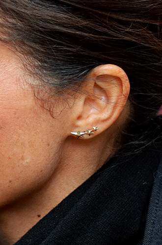 Серьги-гвоздики американского ювелира Gabriela Artigas из 10-каратного золота в виде летящих звезд Меган выгуляла во время поездки в Кардифф. Обычные, казалось бы, серьги, если бы не одно обстоятельство…Серьги Triple Shooting Star от Gabriela Artigas: £215