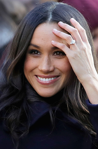 Украшение изготовлено по персональному дизайну Гарри ювелирами Cleave & Company. Центральный бриллиант в 3 карата из Ботсваны – напоминание о первой романтической поездке пары...Помолвочное кольцо с бриллиантами: £140 000