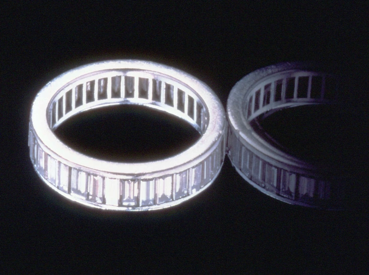 Как мы уже отметили, «драгоценная» коллекция Мэрилин Монро была достаточно скромной. Но все же актриса обладала по крайней мере двумя особо ценными экземплярами. Одним из них было обручальное кольцо с 35 бриллиантами огранки «багет», подаренное ее вторым мужем Джо Ди Маджо в 1954 году в день их свадьбы. Мэрилин и американский бейсболист познакомились в 1952 году в маленьком итальянском ресторане на бульваре Сансет в Голливуде. За год до этого центральный игрок «Нью-Йорк Янкиз» Ди Маджо заметил фотографию молодой актрисы, стоящей с двумя другими бейсболистами, и был просто очарован. Спортсмен сам связался со звездой и предложил встретиться. Два года спустя они поженились. К сожалению, брак был неудачным — пара распалась всего восемь месяцев спустя, сославшись на сложности с доверием и ревность. Говорят, что последней каплей стала та самая известная сцена с поднятой воздухом вверх юбки Мэрилин. Несмотря на это актриса очень дорожила подарком Ди Маджо. Уже после смерти Монро украшение дважды выставлялось на аукционе: в 1999 году на торгах Christie's в Нью-Йорке кольцо с одним потерянным бриллиантом ушло за 772 500 долларов, а в 2011 на аукционе Profiles in History его оценили в 420 000 долларов.