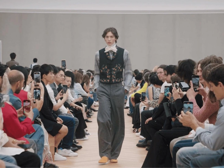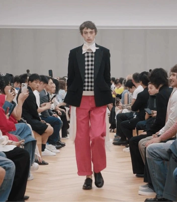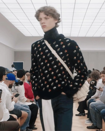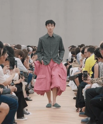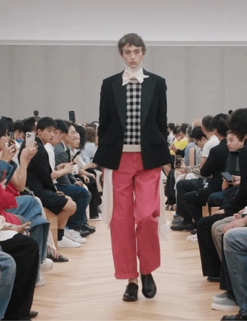 Раньше мы видели тенденцию перехода вещей из мужского гардероба в женский. Доказательства — те же оверсайз-пиджаки, лоферы, портфели. Джонатан показал, что и мужчины могут вдохновляться женским гардеробом — и для этого не обязательно надевать каблук или платье.