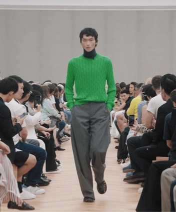 В Loewe Джонатан Андерсон был известен своим художественным взглядом на оттенки. Его вещи всегда выглядели так, что их хотелось потрогать, надеть и добавить в свой гардероб. Этот показ стал логичным продолжением мысли — хаки, изумрудный, синий, мятный и голубой с розовым сочетались грамотно и не конкурировали между собой.