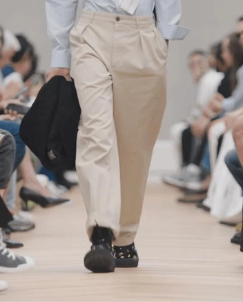 И речь не только о пиджаках с басками. Джонатан Андерсон представил сверхширокие бермуды с рукавами в стиле карго, а также джинсы-бабочки — опять же, больше присущие женскому гардеробу. Да, смотрится непривычно — но пора готовить гардероб к следующему лету, и ставим на то, что ультра-широкие фасоны будут в тренде.